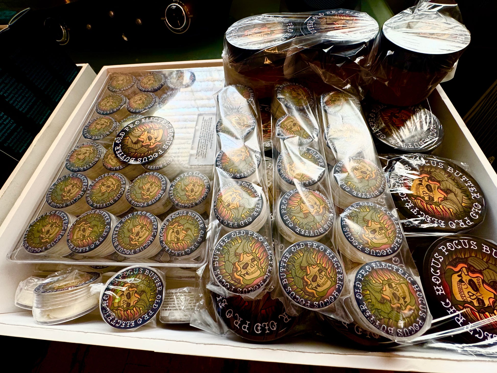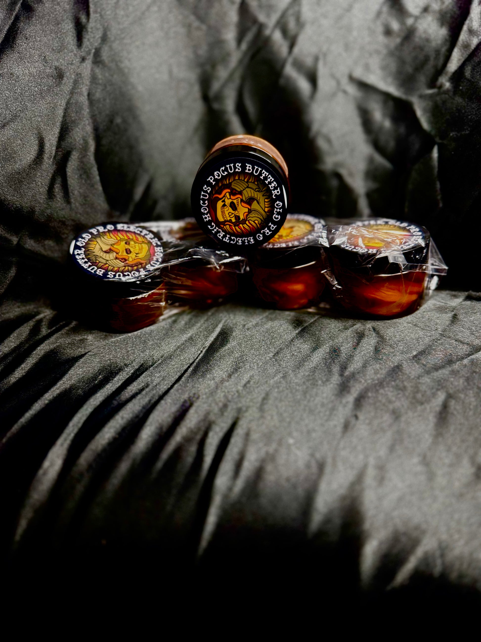Old Pro Tattoo Electric Hocus Pocus Butter for professional tattooing IS ALL SMALL BATCH PRODUCED GLIDE, and is a rich, concentrated glide, crafted to provide deep healing, superior moisture, and maximum skin nourishment during the tattoo or new tattoos and beyond. Formulated by a veteran tattoo artist and developed in a medical-grade lab, this butter holds into the skin on contact, forming a breathable, protective layer that locks in hydration without clogging pores. dramatically improving the tattoo outcome. When used correctly doesn't allow ink to build up on skin during the tattoo process. Your Clients will notice the difference and you as the artist.