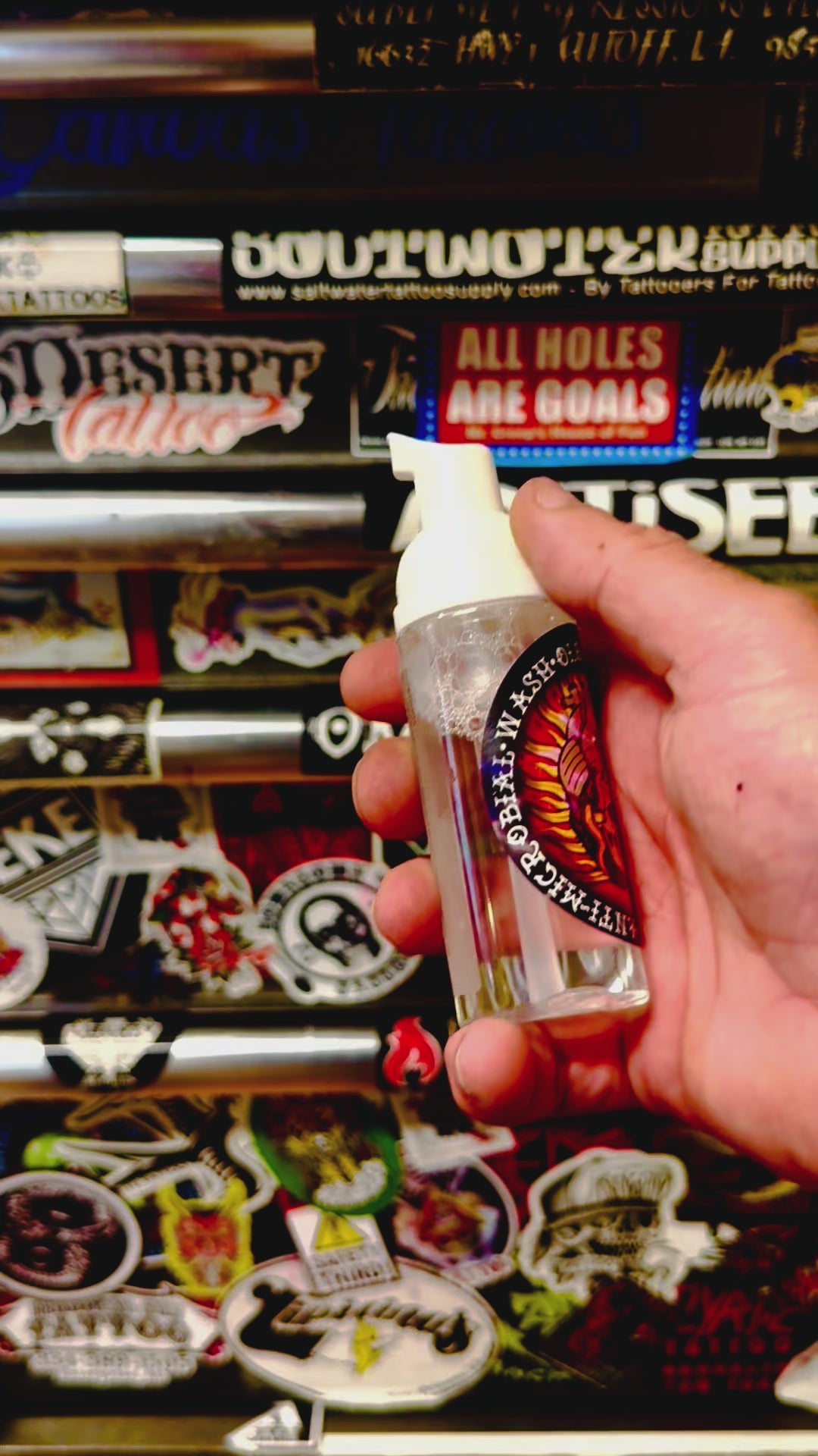 QTY. 1 - 4oz- BOTTLE OLD PRO ELECTRIC HOCUS POCUS ANTI-MICROBIAL TATTOO WASH medical-grade, all-natural anti-microbial wash specifically designed for the care of freshly tattooed skin. Formulated in a lab and developed by a veteran tattoo artist, this gentle yet powerful cleanser helps protect new tattoos from infection while promoting a clean, healthy healing environment.